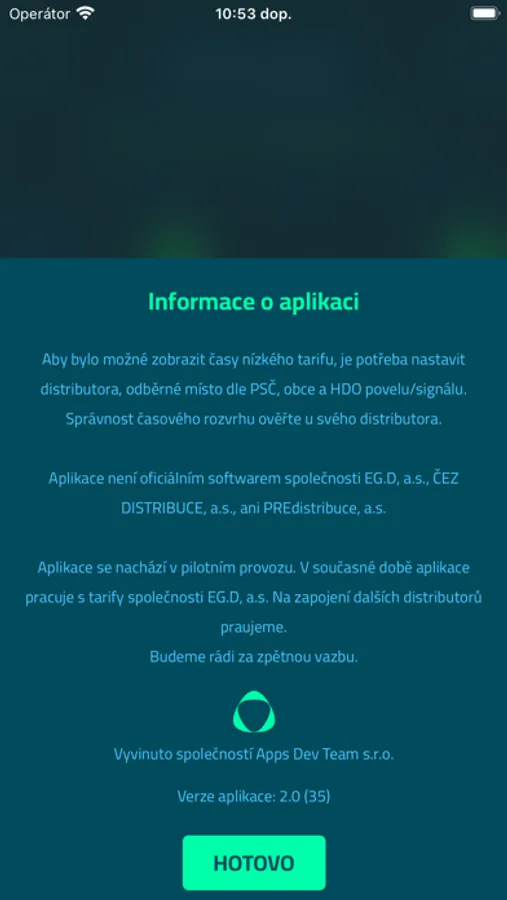 Aplikace se nachází v pilotním provozu. V současné době aplikace pracuje s HDO povely/signály distributora EG.D, a.s.