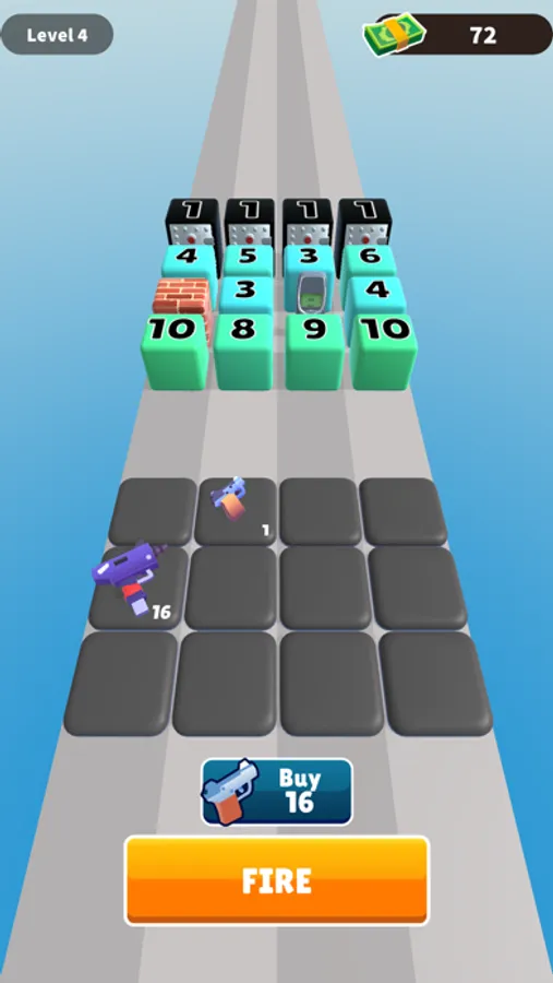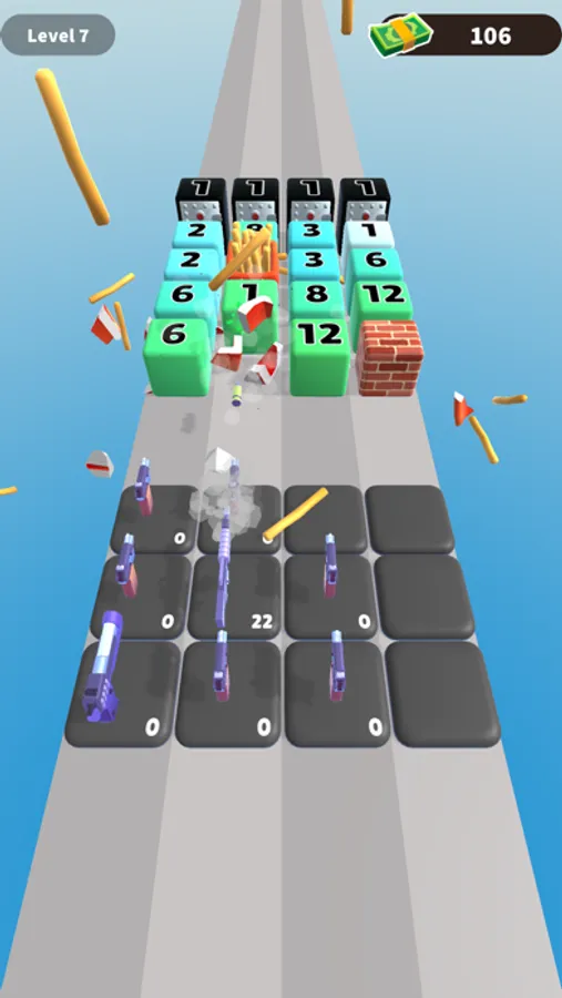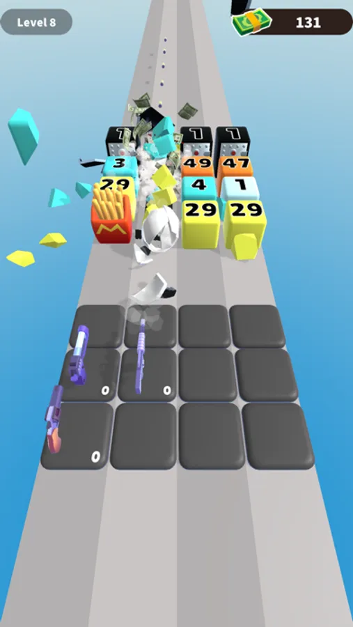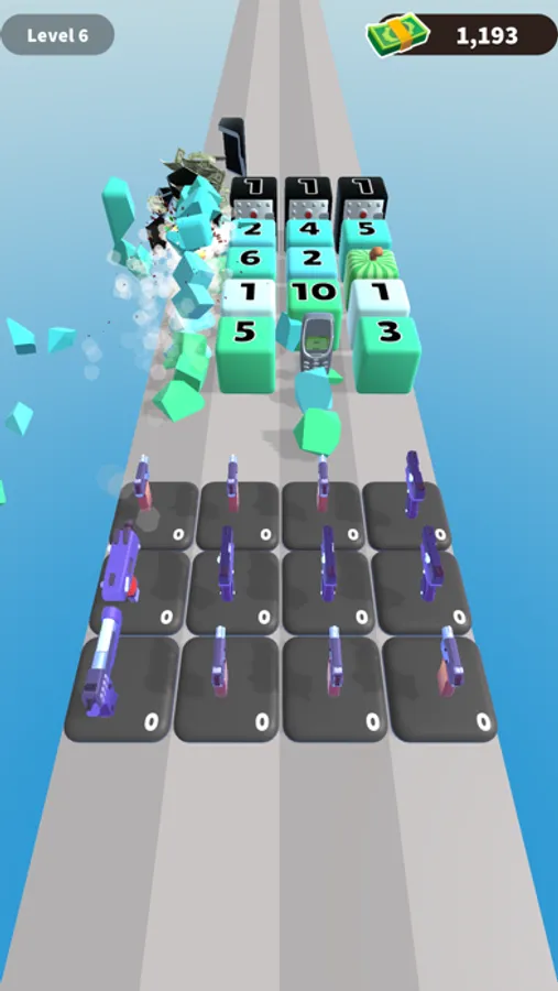 - After you arrange all the guns on the platform, just tap to fire and destroy the blocks