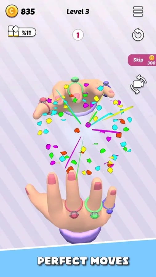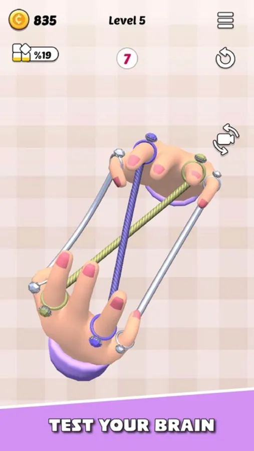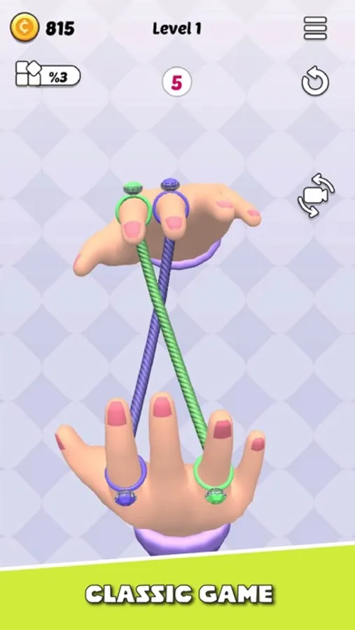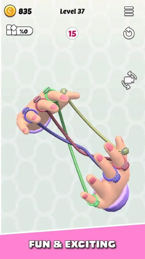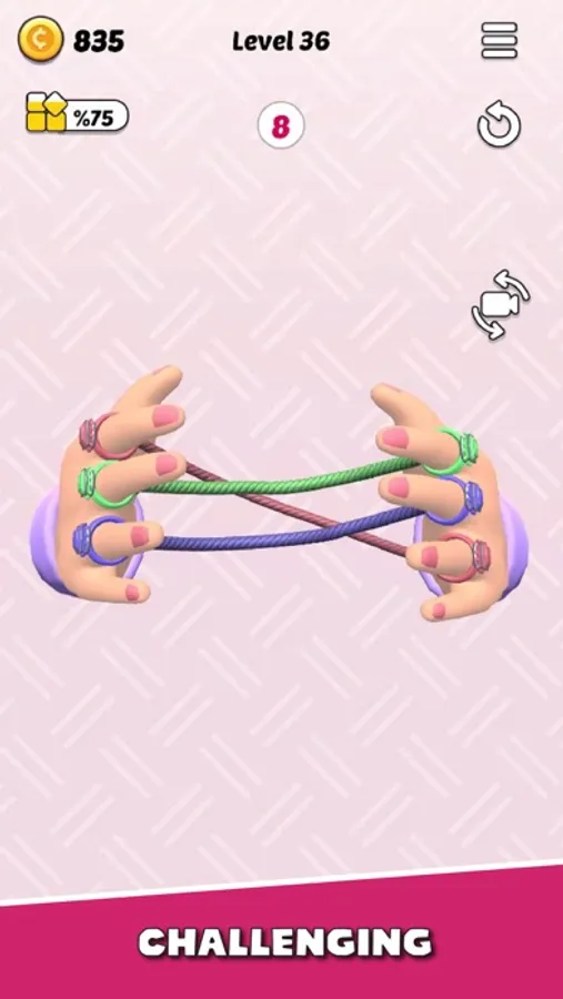 In each level of the game, you are presented with a hand with ropes that are tangled and out of order. Your goal is to untangle the ropes and line them up in the correct order, using careful planning and strategic moves.