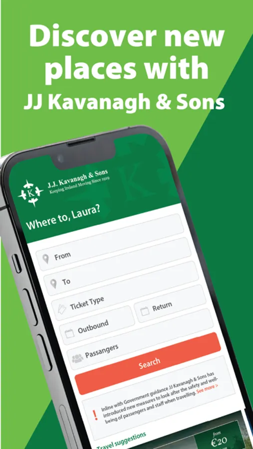 Welcome to the JJ Kavanagh & Sons app. Travel confidently with Ireland's leading coach company.
