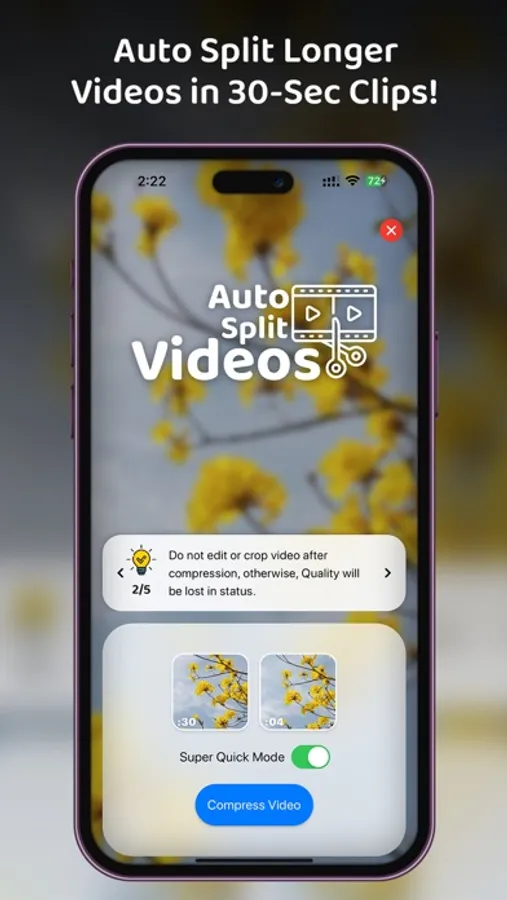 3. Video Splitter Function is only for uploading longer videos in status. If you use it for chats, they will be sent in 30 seconds parts.