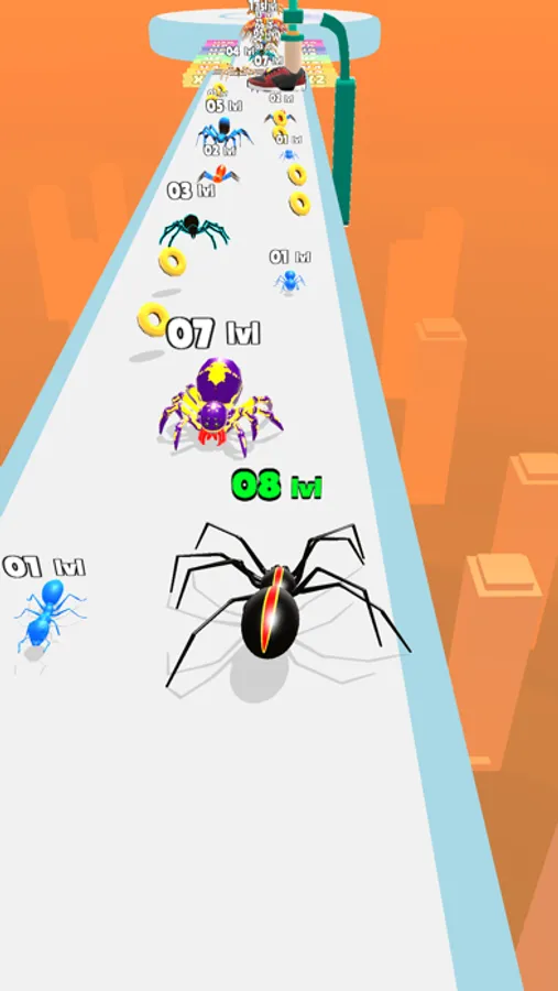 In every level, you will eat smaller and same level insects and avoid big spiders to reach the level end. After every level you will have the option to upgrade your insect or increase the speed of your spider so that you can easily win the level. At every level end, there will be a boss insect which you would have to take down but be very sure that your insect should be evolved enough to beat the boss.