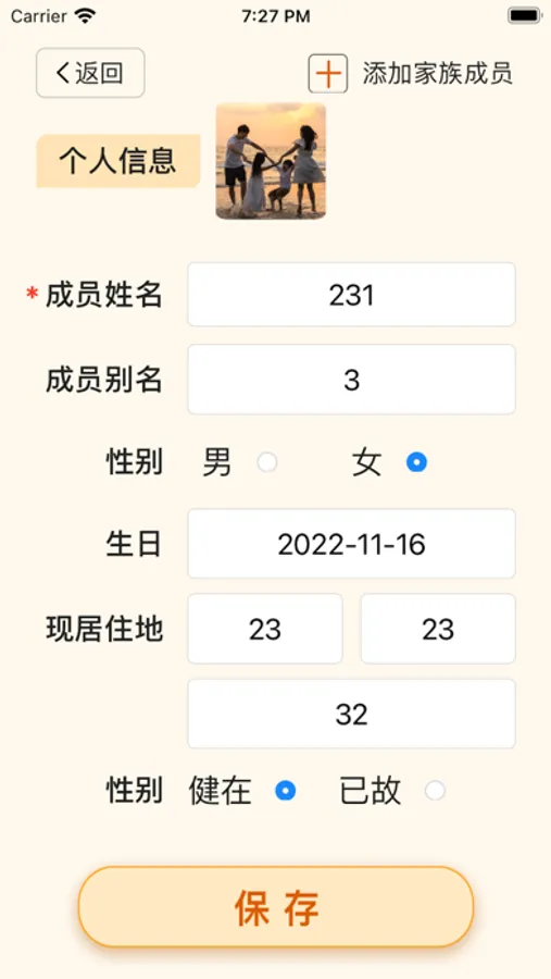 成员树:用来记录家族成员之间的关系,让您一目了然;本地存储,安全无烦恼;