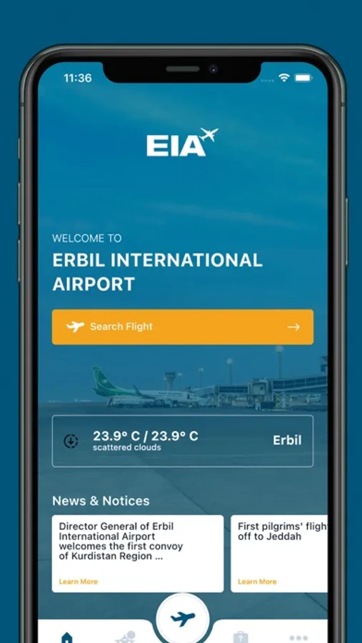 EIA is an international Airport located in Erbil City, Kurdistan Region, Iraq. This App provides real-time flight information, news, weather and other data that are important for the passengers. The long term mission of the airport is to support the future growth of Iraqi Kurdistan by providing highly competitive and attractive products and services for the air transport industry as well as being a profitable business entity that creates value for its owners and customers.