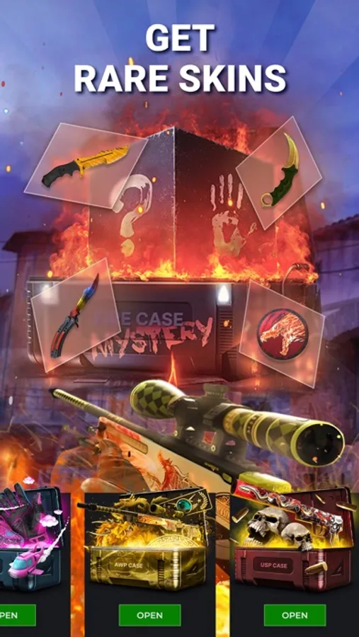 Play fun mini-games to get coins that you can use to buy new cases. Earn in-game experience to open all cases, capsules, and souvenir sets: complete daily tasks and exciting challenges to level up and collect all skins from the game.