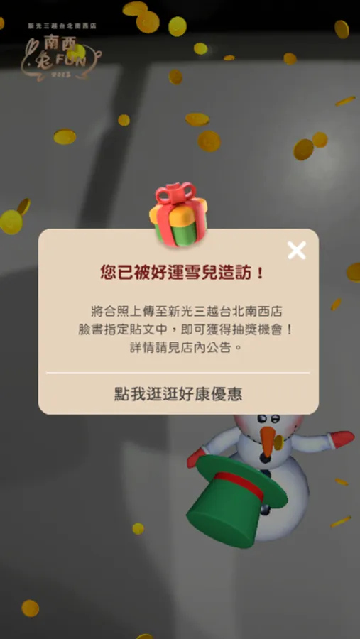 這次邀請神秘嘉賓雪兒與鹿寶蒞臨新光三越台北南西店,打造虛與實AR春節幻境,一起沐浴在黃金雨中!