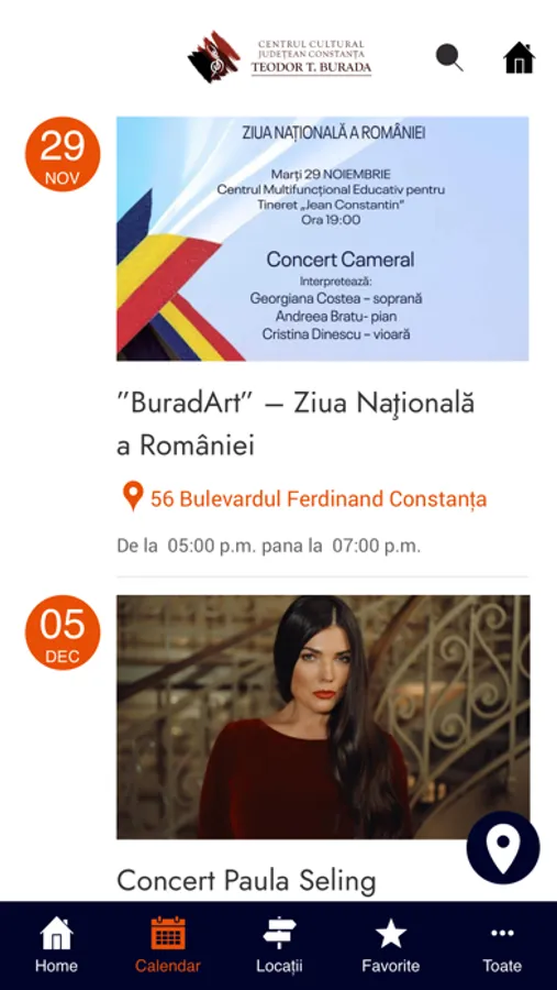 Folosind aplicația ”CulTur Up” sunteți notificat în legatură cu evenimentele de cultură și artă oragnizate de Centrul Cultural Județean Constanța „Teodor T. Burada” (CCTB), dar și despre evenimentele organizate de Centrul Județean Jean Constantin Constanța.