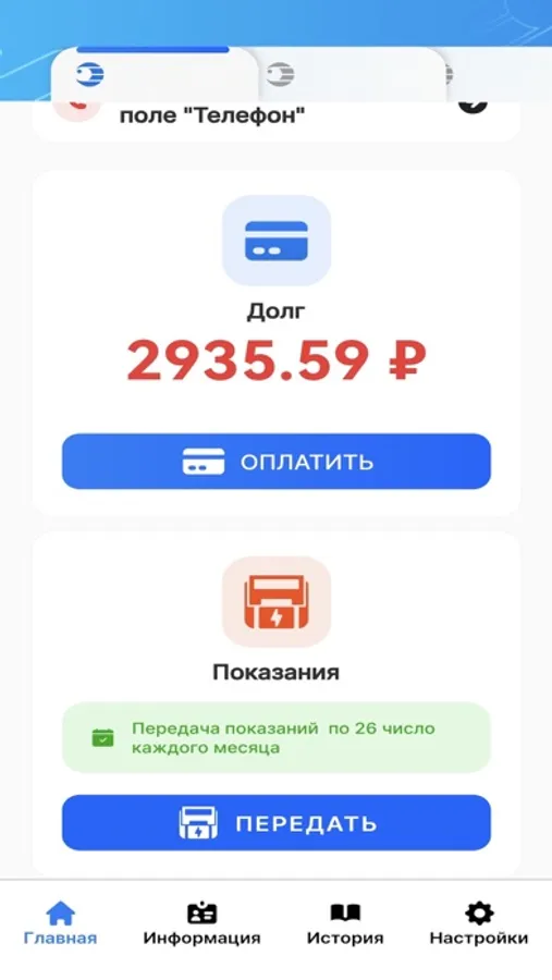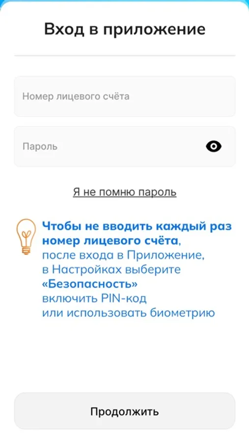 мобильного телефона. В личном кабинете мобильного приложения «Свет