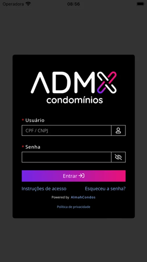 Este aplicativo é exclusivo para usuários da Admx Condomínios.