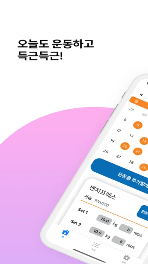 나만의 운동을 등록하고 목록을 관리할 수 있어요.
