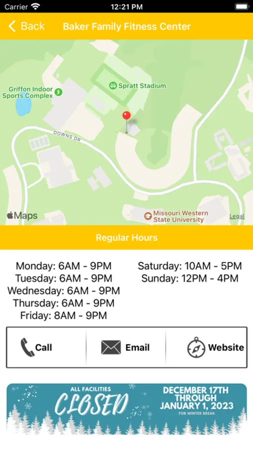 The official app for Missouri Western State University Recreation Services. As a member, you will be able to scan your ID barcode and access the Baker Family Fitness Center, Esports Arena, Looney Complex Gym, and Thomas Eagleton Indoor Pool. Find hours of operation, real-time facility counts, upcoming fitness classes, and more. Use the app to find helpful links to other programs, such as swimming lessons, Griffon 360, and Griffon Alert. Allow push notifications to receive breaking news on facility closures and activity changes directly to your phone #FindWhatMovesYou