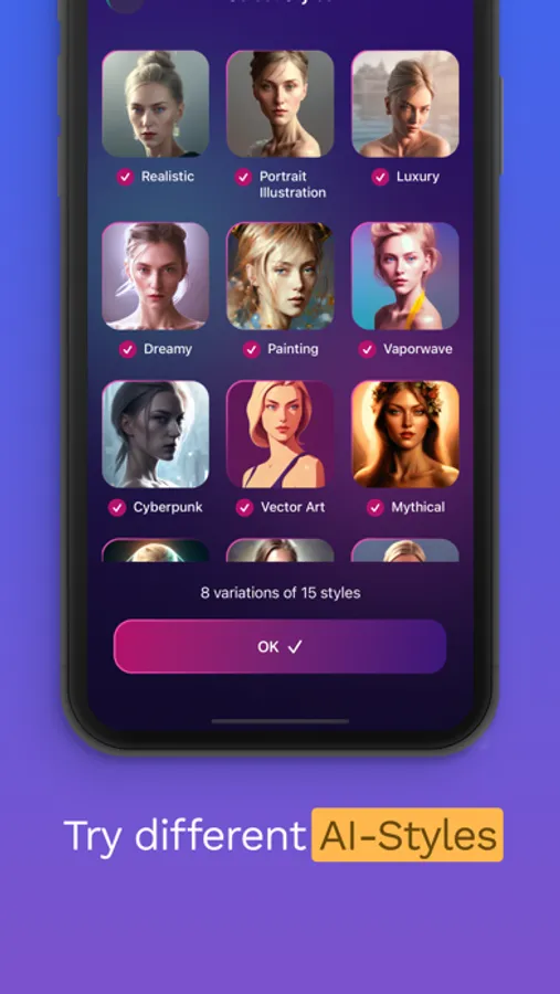 Upload ~20 photos of yourself (or your dog or cat), and get a pack of 120+ AI-generated avatars of your face, including styles like Avatar and Christmas.