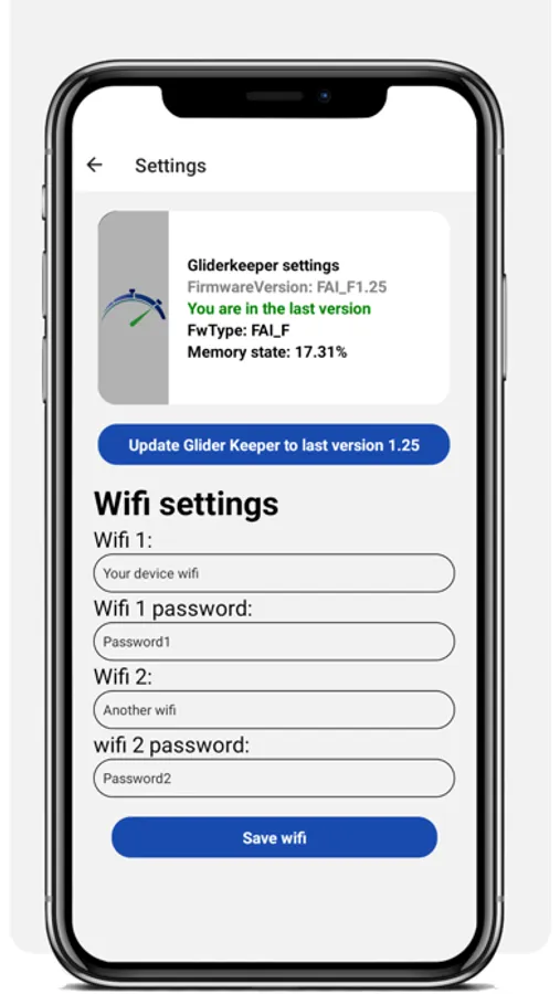 Set your GliderKeeper in the same Wi-Fi as your mobile, and that's it. We recommend warmly to configure your GliderKeeper to be in your mobile hotspot or domestic router Wi-Fi, in preference than using the Wi-Fi generated by GliderKeeper. Use this Wi-Fi for "pairing" to the preferred ones.