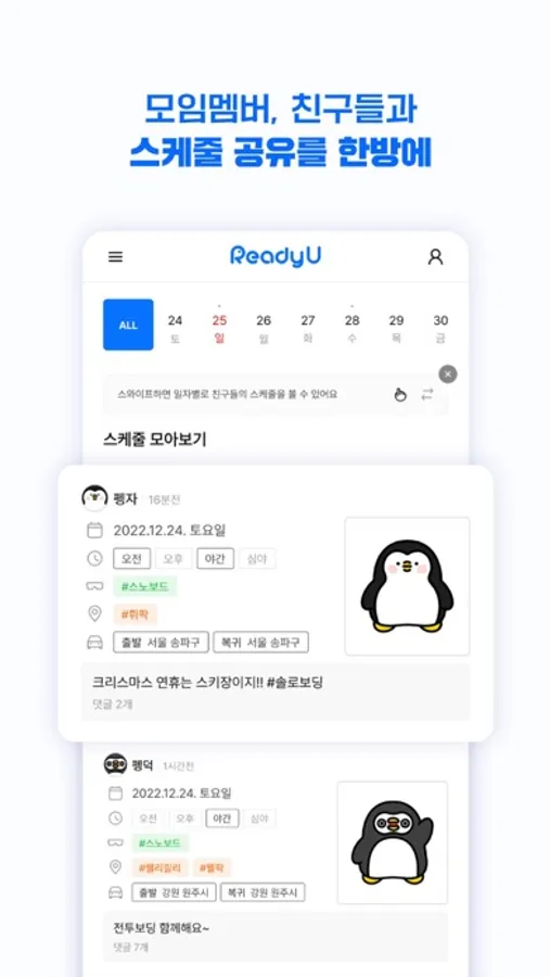 레디유로 친구들과 레저 스케줄을 공유해요.