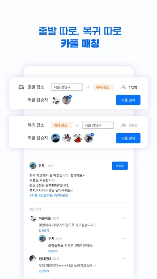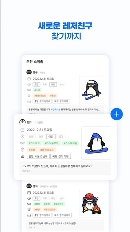 - 내 레저 스케줄 공유 (언제, 어디로, 무엇을 할지)