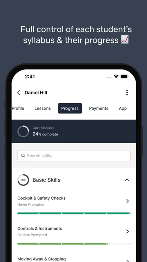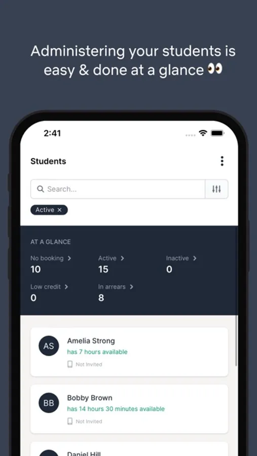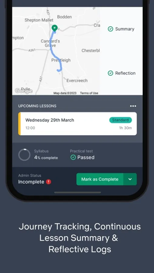 This is the in-car Companion App, designed for use during the day between lessons. Download your records to the app, work with them offline, then sync your changes back to the Cloud when you get home. Use the app alongside the powerful website tools to revolutionise the way you manage your admin.