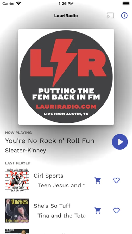 LauriRadio is the first all-fem* radio station (inclusive of LGBTQIA & Non-Binary, anywhere a fem voice is represented). On LauriRadio, you'll hear all-fem Rock, Alt, Punk, Surf, along with comedians, TV & movie clips and inspo. An OG Diva tune plays once an hour, to honor the shoulders we stand on today. The LauriRadio library houses thousands of songs and hundreds of artists, with People of Color, International artists, and the LGBTQ/NB community represented. New music is added weekly in every category. There's also special programming throughout the day; artist features, interviews, relevant topics, etc. LauriRadio is not a playlist or a stagnant audio file. The station is programmed daily, by hand and streams live 24/7. Every hour of every day gets a comb-through for flow and content, making sure the overall vibe is consistent. LauriRadio is not a she-rah station - there's nothing to prove - no chip on the shoulder. It's a place to celebrate the badassery all in one place, to leave you feeling better than when you first tuned in, giving you a boost, a lift, and a reminder of your own power.