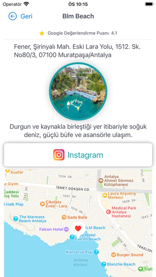 Antalya'ya tatile geldiniz ve gezilebilecek yerleri mi arıyorsunuz? Bu uygulama size plajlardan tarihi yerlere, müzelerden şelalelere, eğlencele alanlarına kadar hepsini bir arada bulma imkanı sunar. Antalya'ya gelmişken tatmadan olmaz denilen yiyecekleri, tatlısından dönerine, pizzasından dondurmasına hepsini bu uygulama sayesinde internette vakit kaybetmeden bulabileceksiniz.