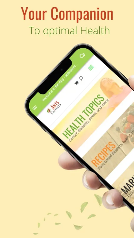 Find inspiring health videos, delicious and simple plant-based recipes, navigate our marketplace, and much more on Ants Talents App. For better physical, mental and spiritual health!