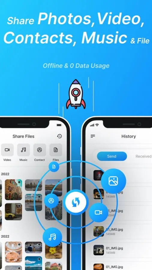 ShareMe's user-friendly UI makes file transfer simple. Files are sorted into categories like music, contacts, and images, which makes them easy to find and share.