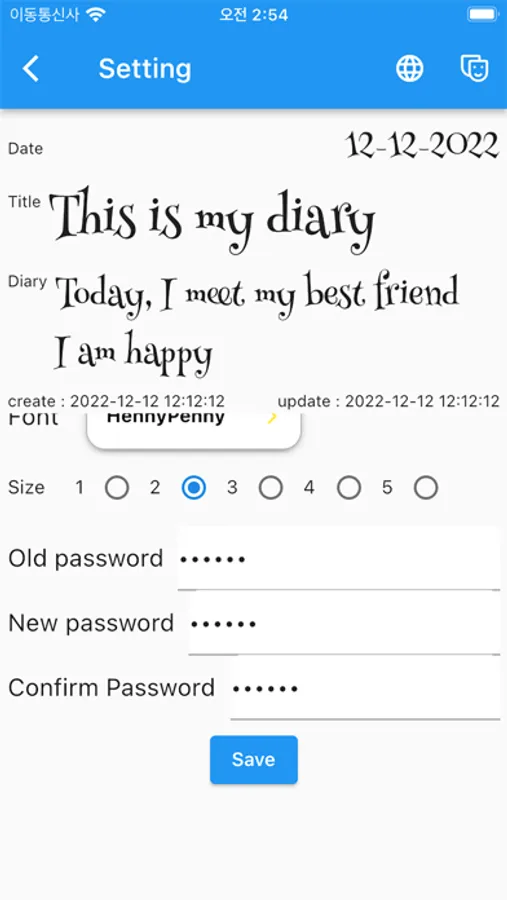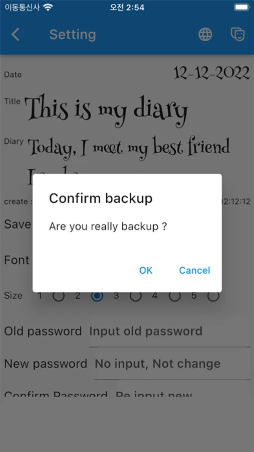 - You can back up the diary data to the download folder of your smartphone or restore the backed up file. All backed up data is encrypted and cannot be viewed by anyone.