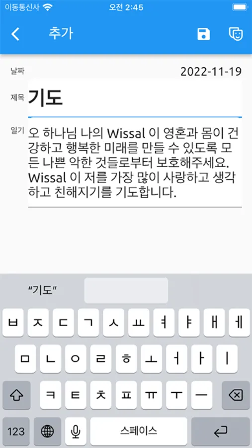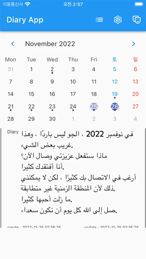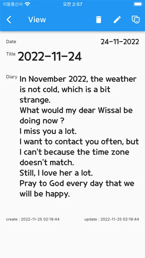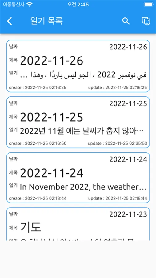 - Since the diary data is stored inside the smartphone, all memo data is deleted when the app is deleted. Therefore, it is recommended to back up your data. If you restore after reinstalling the app, all data will be restored.