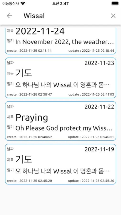 - Write diary, edit, delete, search function