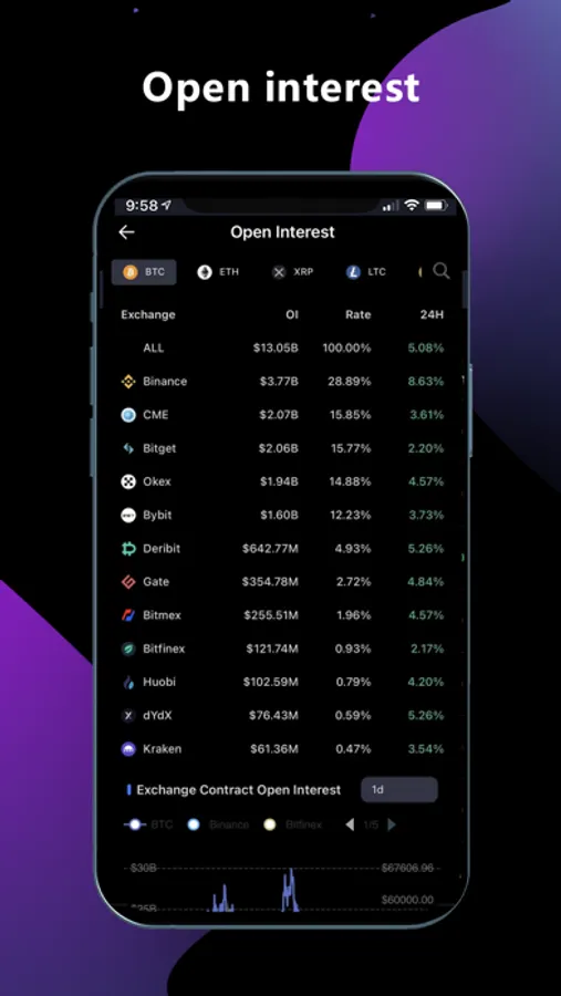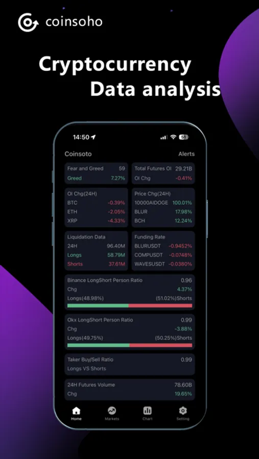 Using this app, you can view professional K-line charts, including powerful derivatives data indicators and professional orderflow charts.
