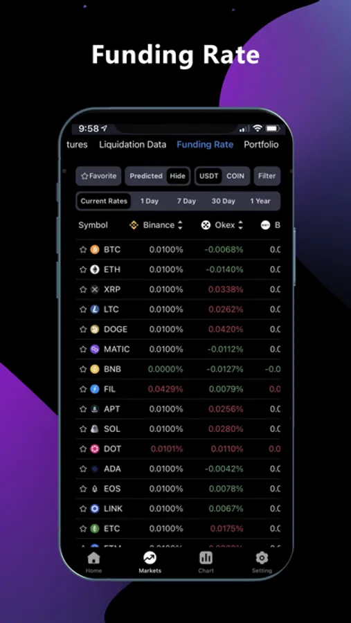 4. Comparison of real-time perpetual funding rate and forecasted funding rate of each exchange, which including USDT and USD unit, and you can refer to historical funding rate