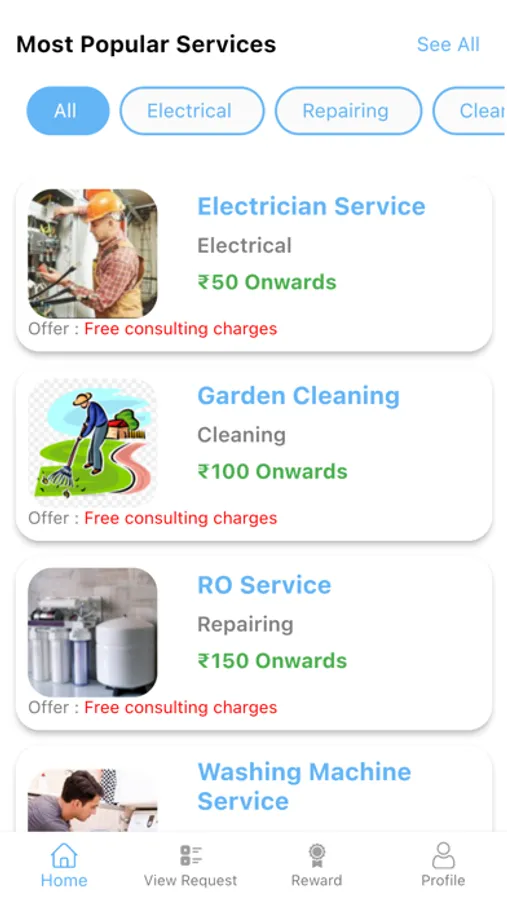 Through our OneClick app, you can book at home services - to home repairs & maintenance, such as AC servicing, electrician, plumber & carpenter. The complete list of home services is as follows: