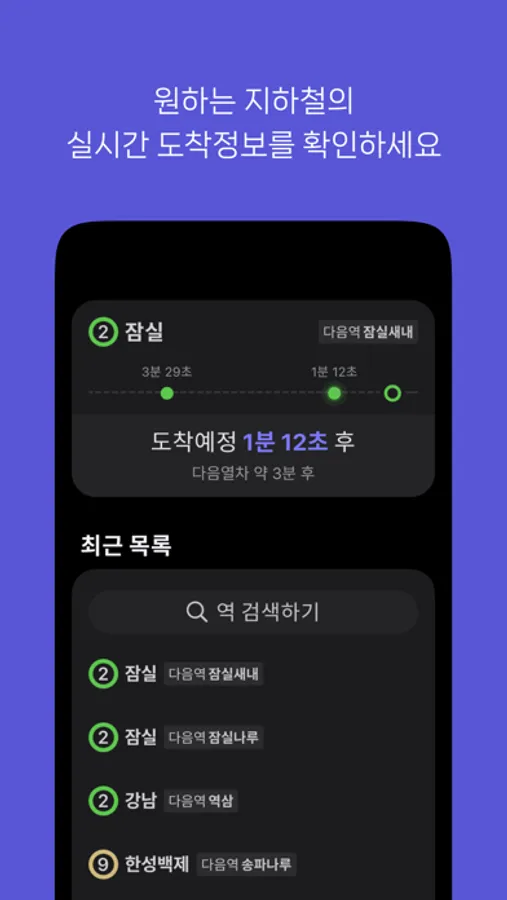 내가 타야할 열차의 남은 도착시간을 실시간으로 표시합니다.