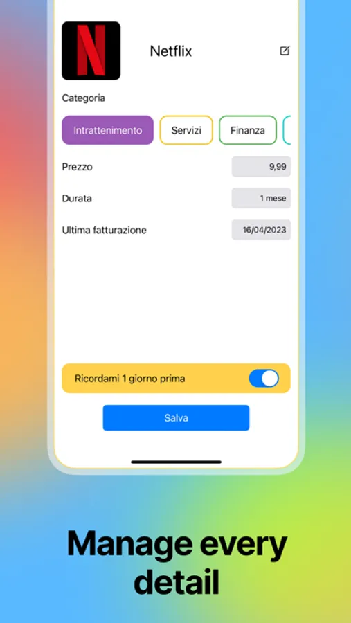 - Enable notifications to receive a reminder the day before payment, so you don't forget to recharge your card or confirm the payment method.