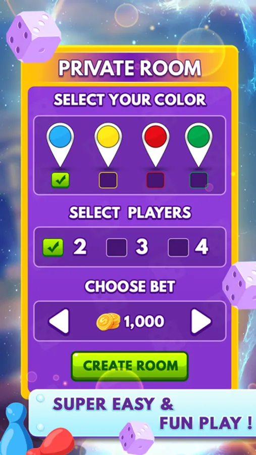 Online ludo game can be played between two to four players. our online ludo game can be played with two to four players. Each player is assigned a specific colour at the start.