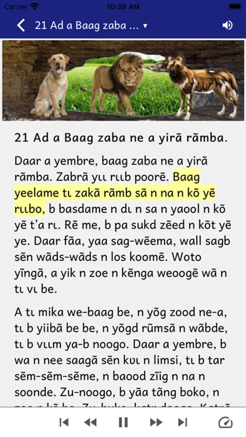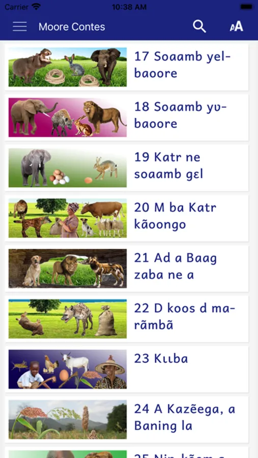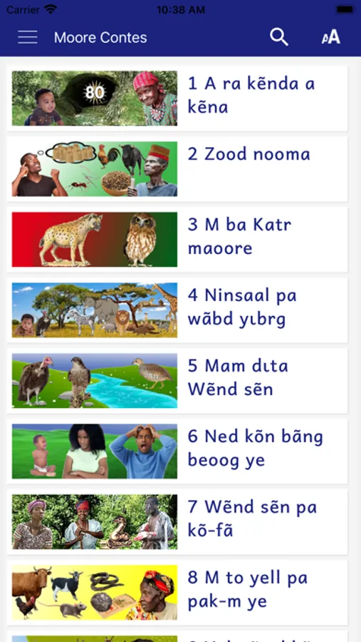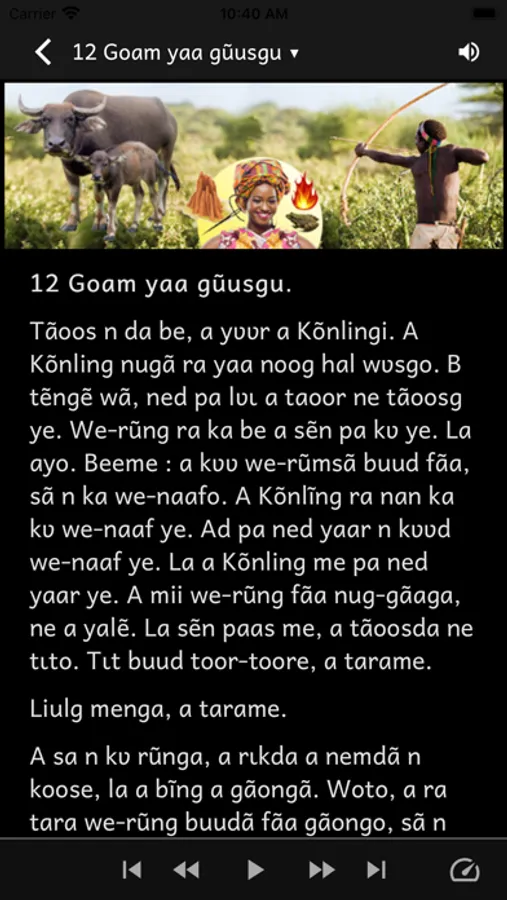 Les contes Mooré La littérature orale remplit de nombreuses fonctions dans la société : initiation, éducation, distraction... Le conte, est plus particulièrement le miroir de la société, il souligne les mentalités, révèle les croyances et valorise certaines conduites. Choisissez un de ces nombreux conte et cliquez sur le petit icône de haut-parleur, puis sur Play. Vous entendrez une voix qui lit le conte pour vous et vous pouvez suivre facilement aussi l'écriture.