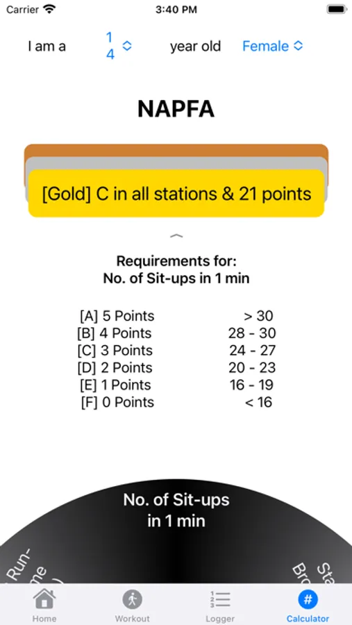 Unable to get the grades you want for your NAPFA? Not sure how to calculate your scores? Don't have the motivation to workout? You don't have to worry! NAPFA+ is here to solve your concerns. With these features below, we are confident that you will ace NAPFA!