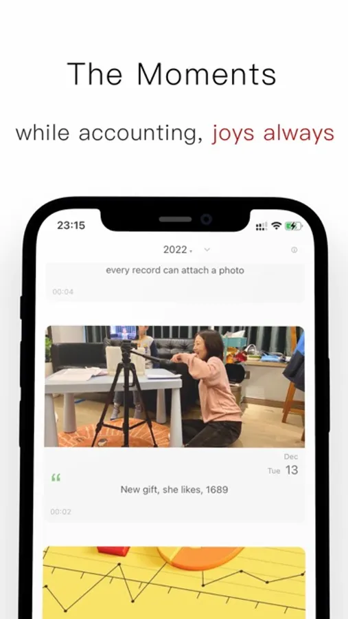 That's why CostMemo can attach a photo with each record. Eventually it will be aggregated into the "Moments" feature, which can be used to aggregate paper bills for future reference, but our design intention is more to record the good moments in life while keeping track of the bills.