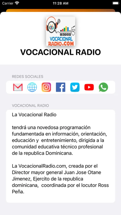 La VocacionalRadio.com, creada por el Director mayor general Juan Jose Otane Jimenez, Ejercito de la republica dominicana, coordinada por el locutor Ross Peña.