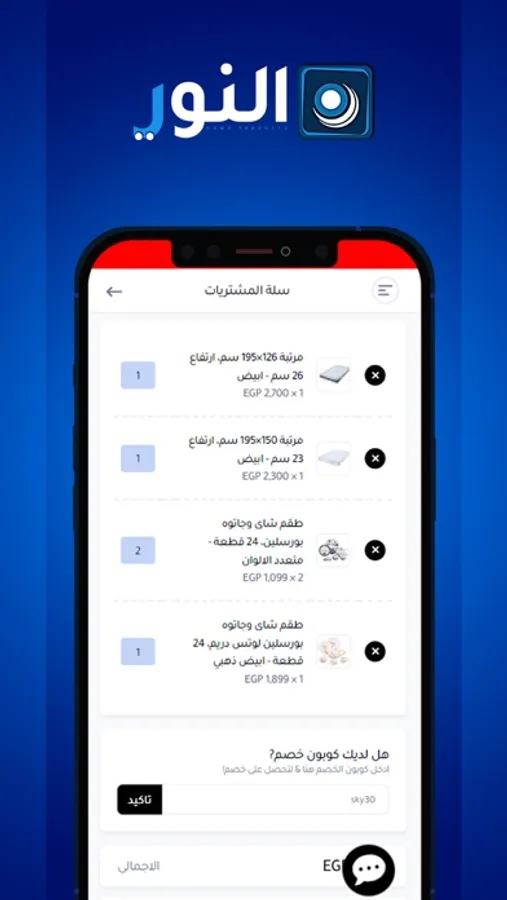 التطبيق الرسمي لشركة النور لمنتجات المنزل اقل الاسعار واعلى جودة تسوق الان من تطبيقنا توصيل لجميع محافظات مصر دفع عند الاستلام وطرق دفع متنوعة