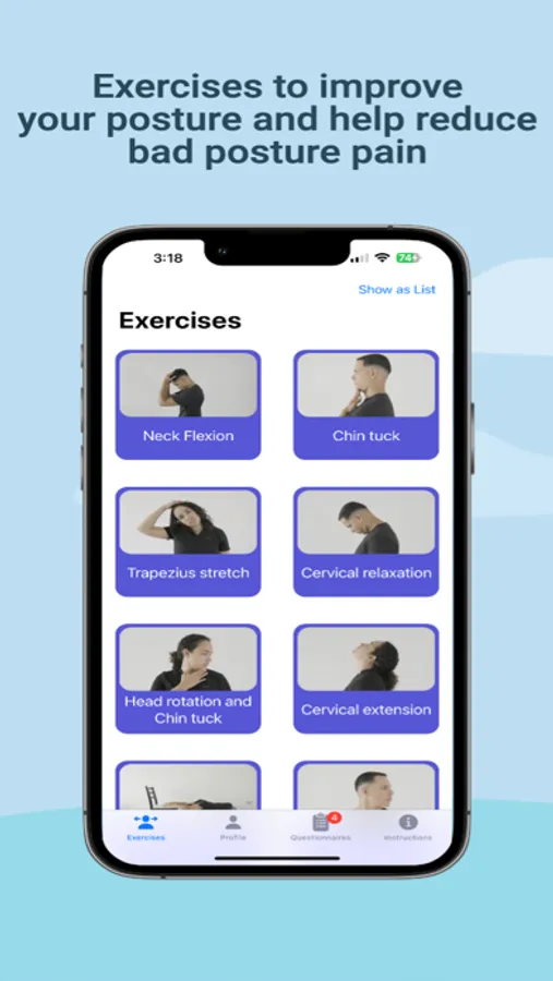 Although the app provides exercises that can strengthen areas prone to posture problems, always consult your doctor first before making prolonged use of the app or before making any medical decisions.
