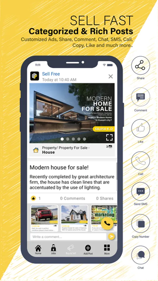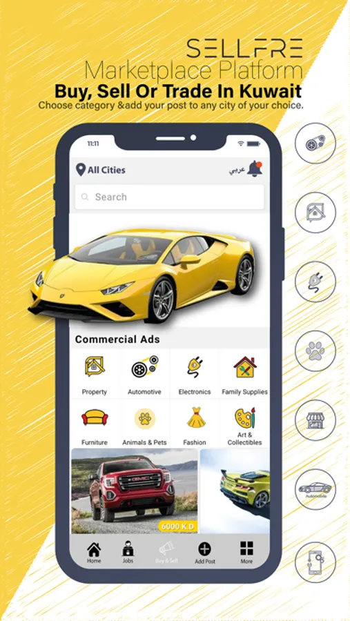 This app is for Selling and Buying Commercial ads | Jobs and Freelancing | General House Repairs and Services in Kuwait.