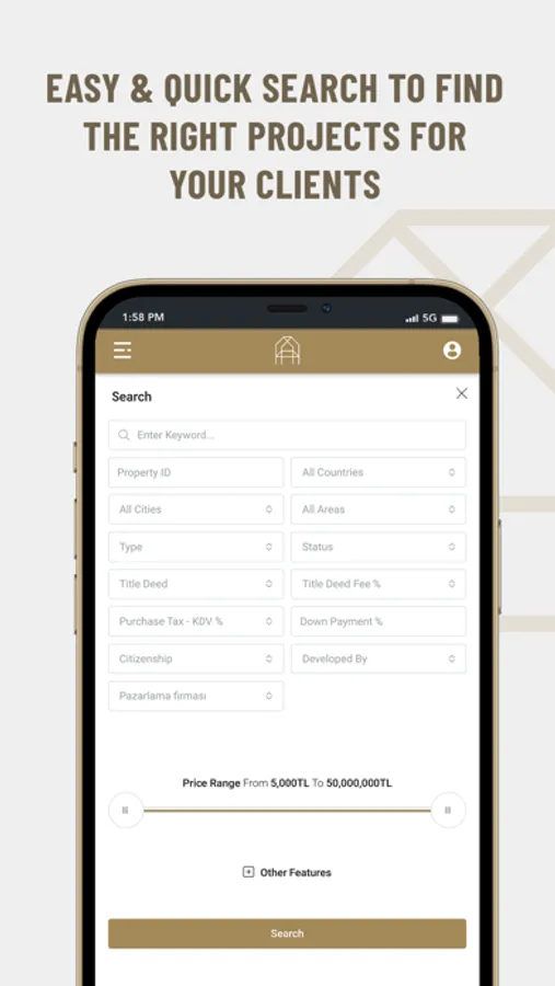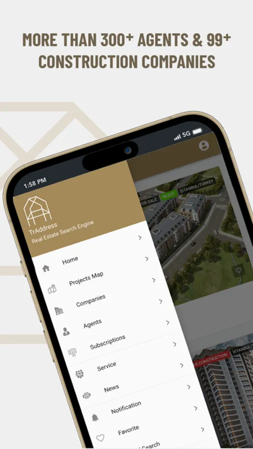 TrAddress app allows you to search Projects, Apartments, Villas, Offices, Shops etc. for sale, under such categories, You can filter out the listings.