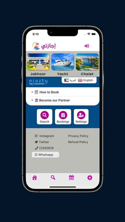 Booking of chalet's , agricutural farm houses, jakhoor, camping(kachaat) yatch and boats facilities all around in kuwait, Famous locations are khairan, wafra farms, holiday beach resorts, direst winter camps in kabd, mutla, ritqa, many more heritage places.