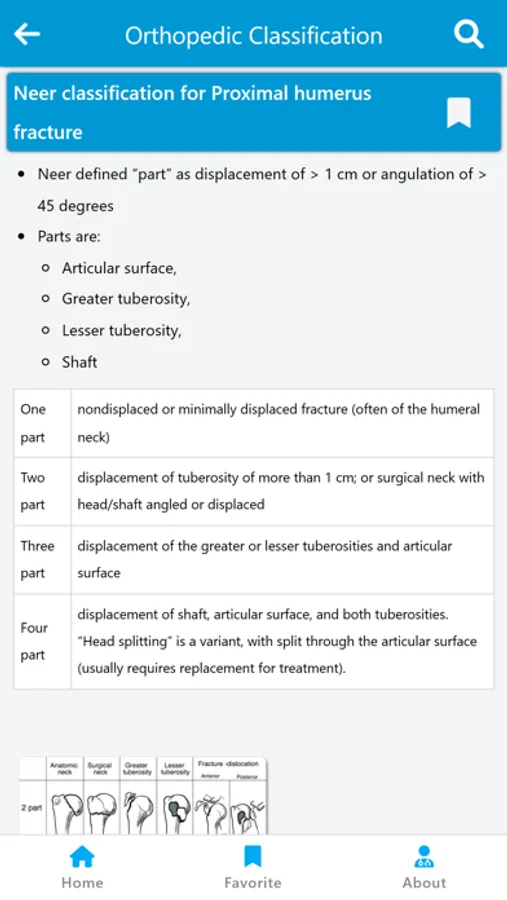 Orthopedic surgery classification pro app for ios contains all classification systems of bone fractures such as the classification of humeral head fractures (Neer classification) and the classification of orthopedic diseases such as the classification of femoral head osteonecrosis (Vicat classification).