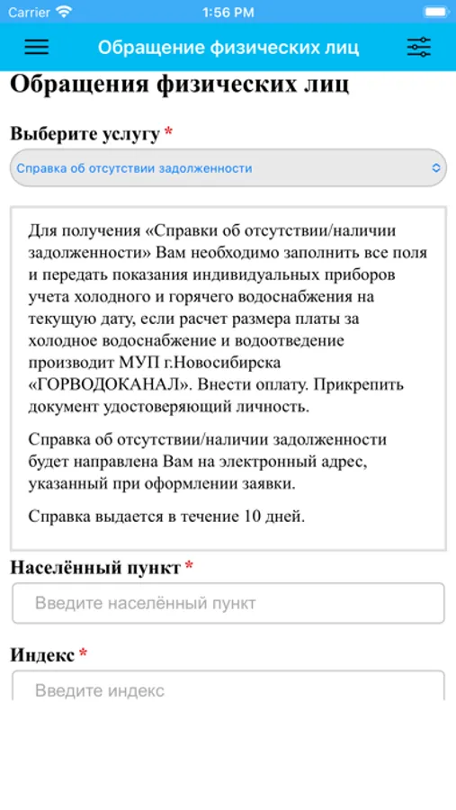 Приложение предназначено для физических лиц.