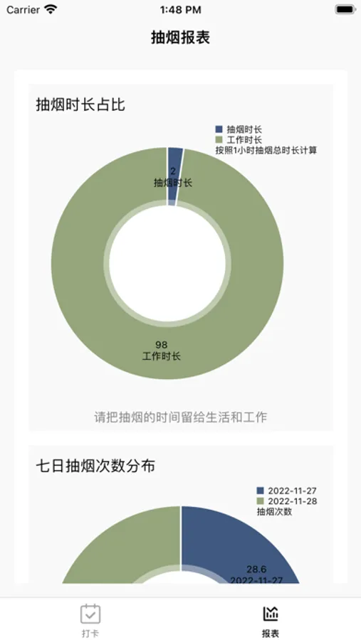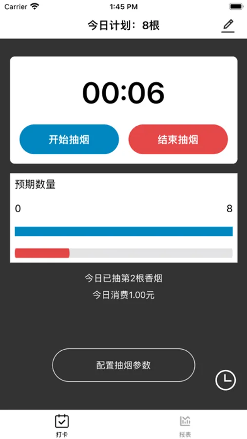 戒烟打卡抽烟记录助手是一款非常简单实用的戒烟打卡App,抽烟时候打卡记录,然后记录您抽烟的次数,希望可以帮助您早日戒烟,祝您戒烟成功!