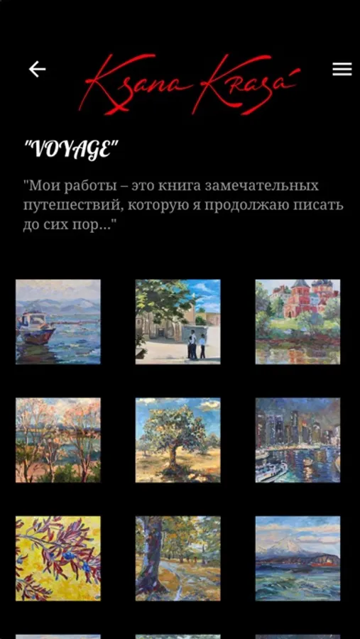 You could see her artistic journey and enjoy Ksana Krasá's paintings presenting a big variety of genres with different techniques and styles.