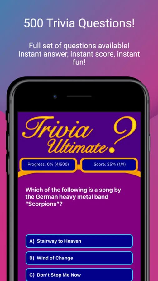 500 Trivia Questions to challenge yourself and have fun at the same time.