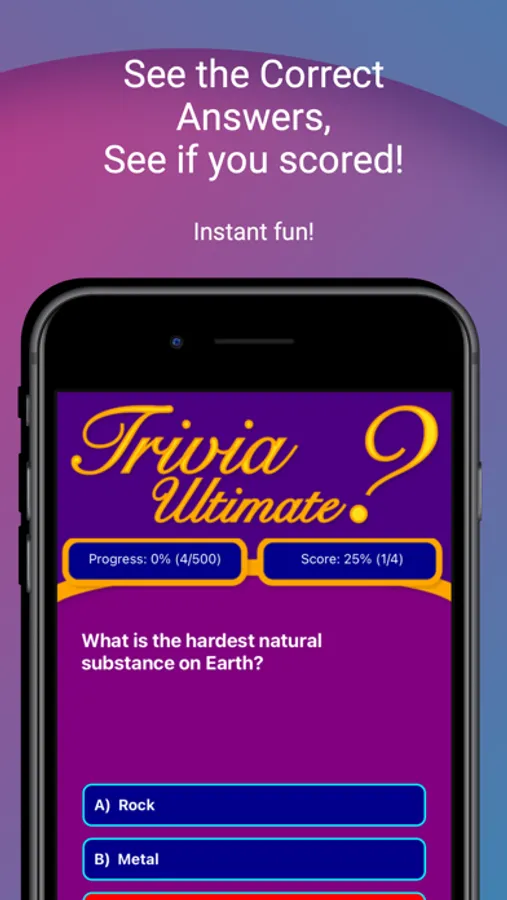 Train your brain while having fun, pick your answer, get instant result, instant score, learn instantly!