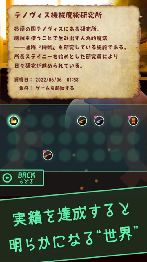 実績レポートからは、この世界や登場人物たちの背景を感じ取ることができます。