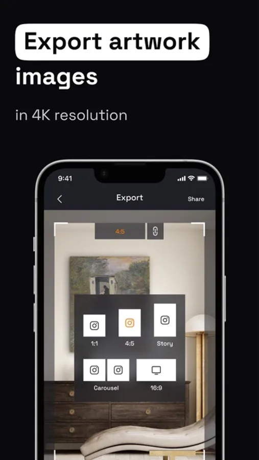 Export your artwork photos in all the popular social media formats in 4K resolution.